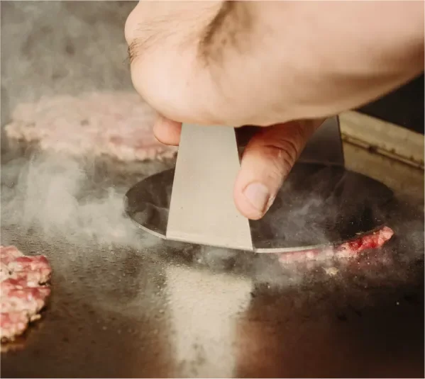 We use a blend of Black Angus beef that has the right balance of lean meat and fat, making it excellent for smashing.